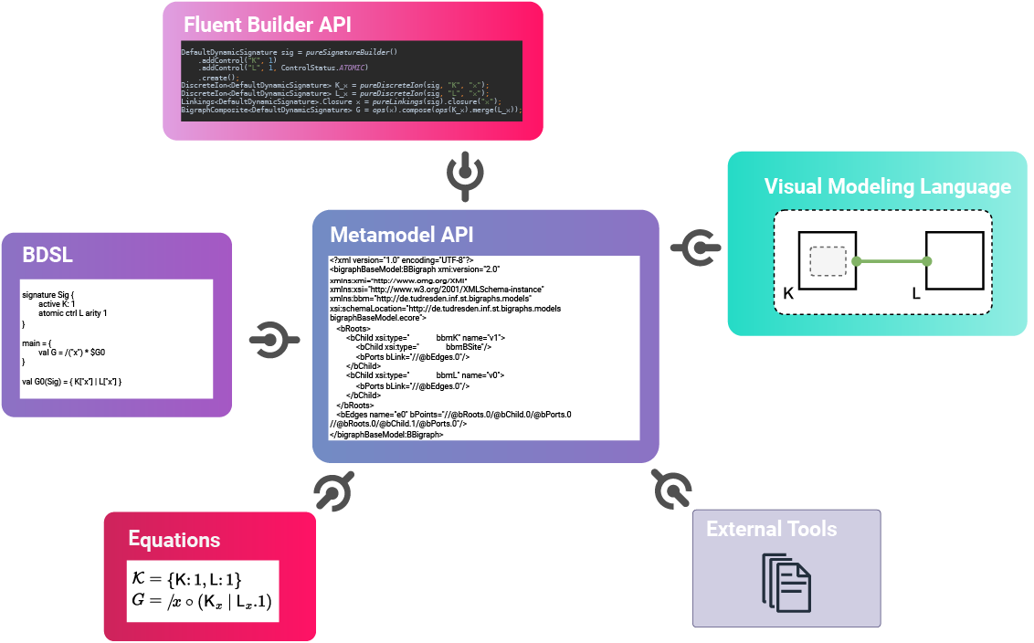 Visit the whole Bigraph Toolkit Suite at GitHubBTS unifies diverse modeling and programming approaches through a single, shared metamodel. This common foundation ensures seamless interoperability, no matter which approach is chosen.