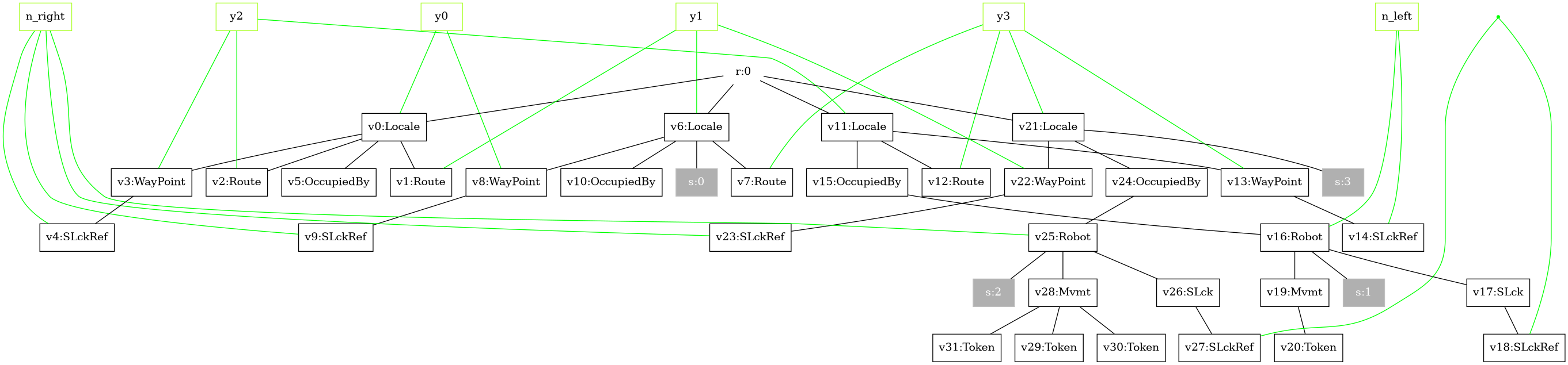 Token(s) under each robot’sMvmt: permission/energy to perform a bounded number of moves.- Waypoints: links that encode where a robot is allowed to move next (e.g., "from left locale to right locale" and vice versa).